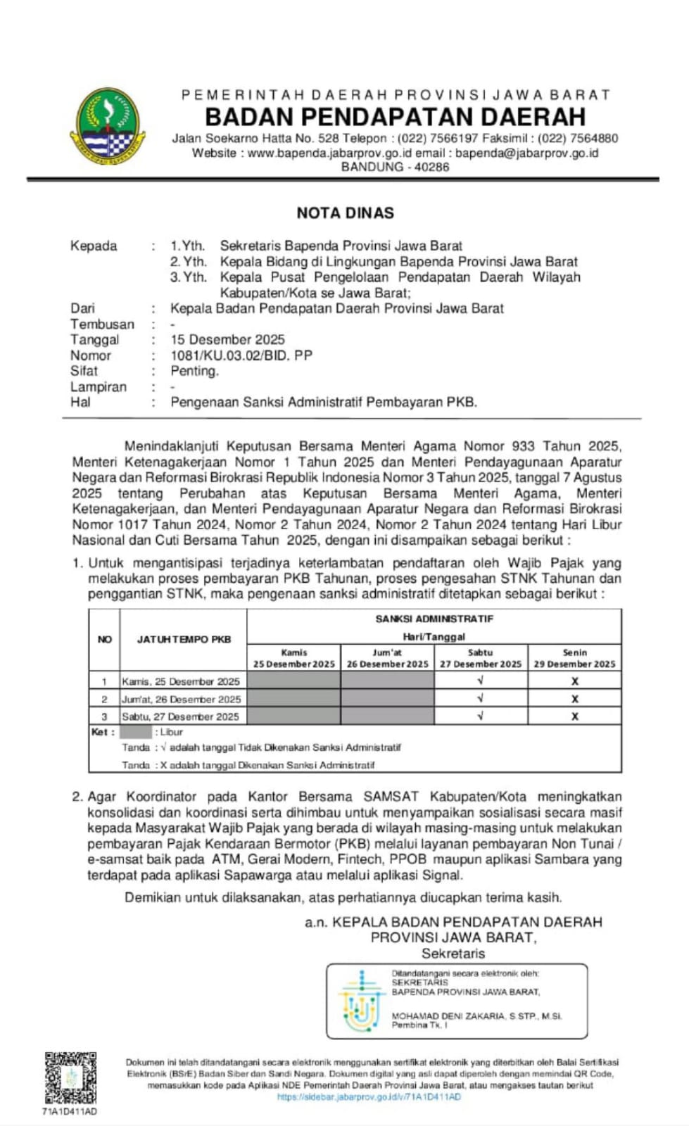INFORMASI SAMSAT DALAM RANGKA LIBUR NATAL & TAHUN BARU 2025